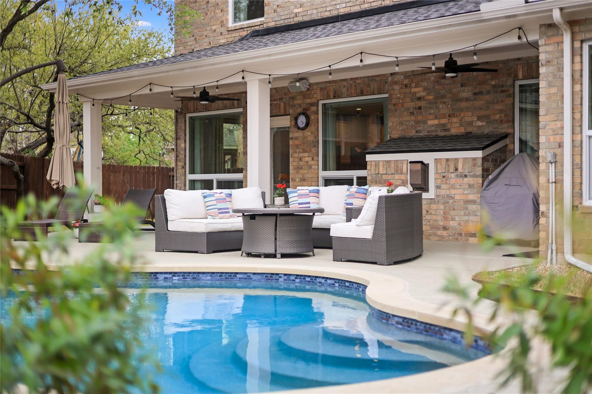 The backyard functions as an at-home retreat, with a resurfaced and retiled pool, upgraded variable-speed pool equipment, expanded patio space, and clean-lined landscaping with pavers, stone accents, and lush turf. A smart irrigation system and thoughtful drainage help keep the yard both attractive and low-maintenance, while Circle C's community pools, miles of trails, the Veloway, nearby golf, and access to highly regarded schools make this property an appealing, lifestyle-focused offering in one of Southwest Austin's premier communities.