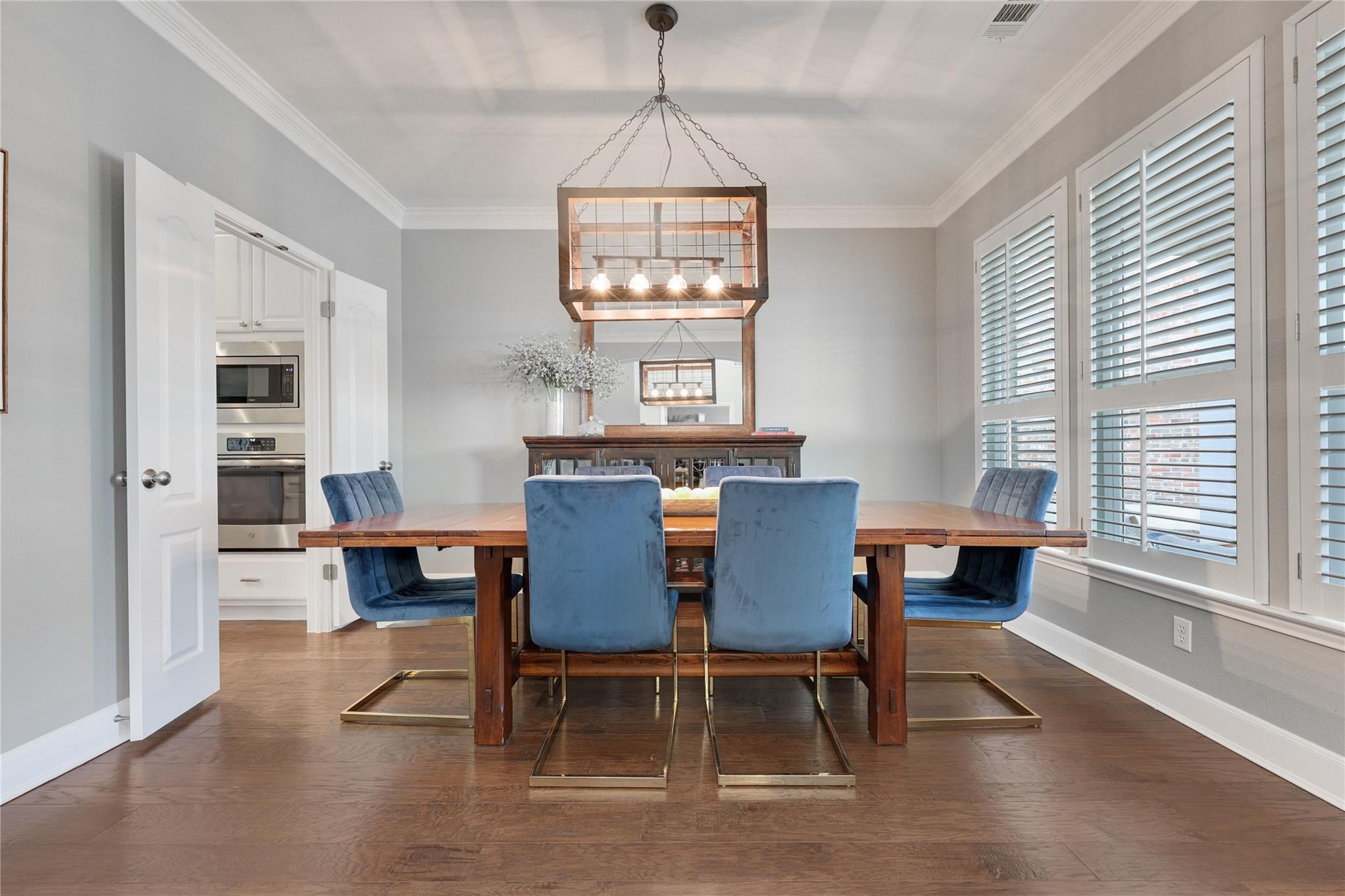Other Interior Features: Ceiling Fan(s), Quartz Counters, Stone Counters, Crown Molding, Double Vanity, Electric Dryer Hookup, Entrance Foyer, High Speed Internet, Kitchen Island, Multiple Dining Areas, Open Floorplan, Pantry, Primary Bedroom on Main, Smart Thermostat, Soaking Tub, Sound System, Study/Home Office, Walk-In Closet(s), Wired for Data