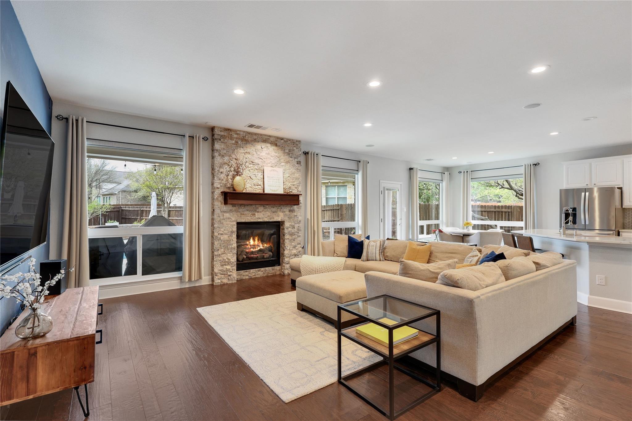 Major systems have been comprehensively addressed: an impact-resistant architectural roof with a 50 year transferable warranty, energy-efficient designer windows designed for the Central Texas climate, dual-zone Trane HVAC under warranty, and recently replaced water heaters. These improvements help reduce the risk of surprise expenses, support better energy performance, and provide peace of mind during inspections and early ownership.