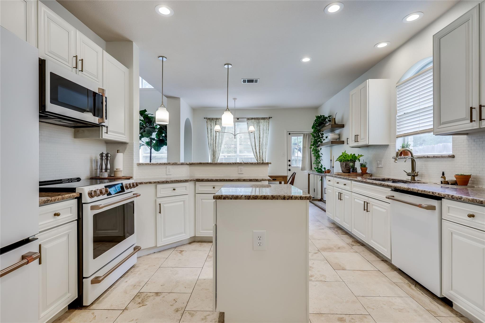 The kitchen showcases new GE Cafe appliances & hardware offering both performance & style for everyday living. Throughout the home, updated light fixtures & ceiling fans enhance its character & a new HVAC system delivers improved efficiency & year-round comfort.