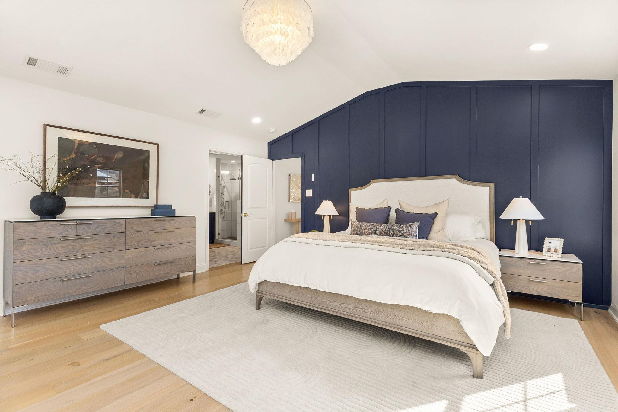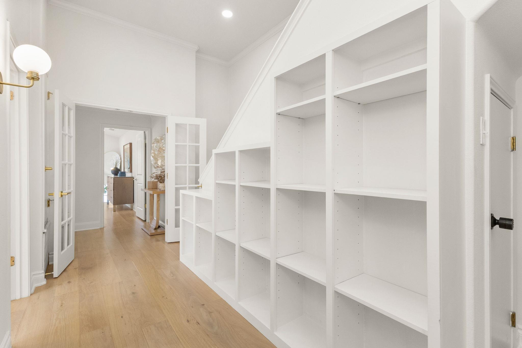 The chef's kitchen features marble countertops, stainless steel appliances, double ovens, a breakfast bar, and a built-in breakfast nook, flowing seamlessly into generous living and dining spaces ideal for both entertaining and everyday living. The light-filled primary suite offers vaulted ceilings, peaceful backyard views, and an ensuite bath with custom closet storage. Three additional upper-level bedrooms, a main-floor bedroom or office, a third-floor bedroom or bonus room, and a quiet library or den provide outstanding flexibility for family life, hosting guests, multi-generational living or remote work. Generous storage and built-in cabinetry throughout the home enhance functionality without sacrificing style, while thoughtful upgrades support modern living, from high-speed fiber internet to smart home and energy-efficient systems.