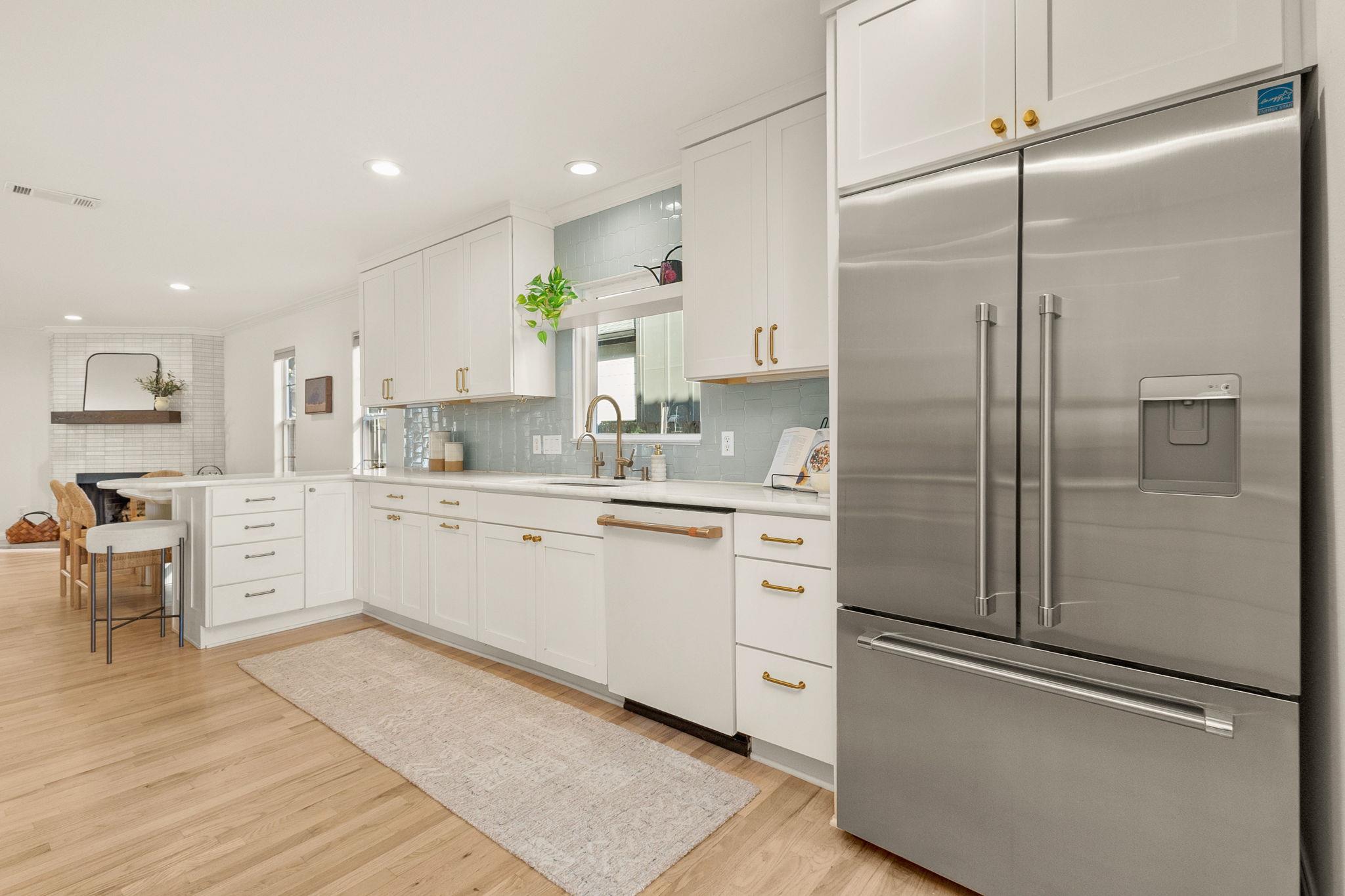 Recent upgrades include new AC and furnace, water heater, new and refinished hardwood floors, custom built-ins, EV charger with power sharing, retractable awning over driveway, smart thermostats, fiber internet, RO water system, spray-foam insulation, new washer/dryer and dishwasher, and app-connected pool and spa controls with a brand-new heater.
