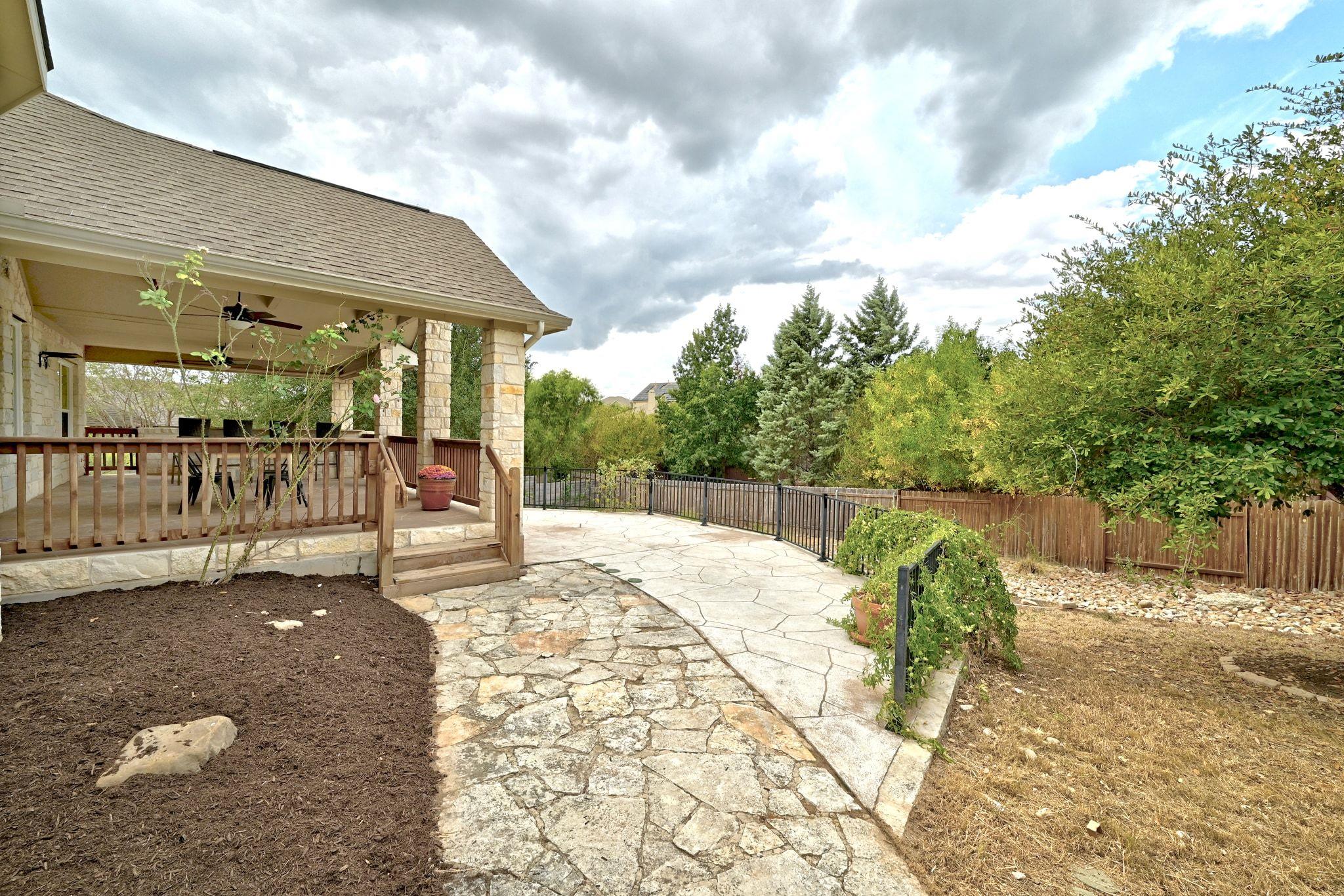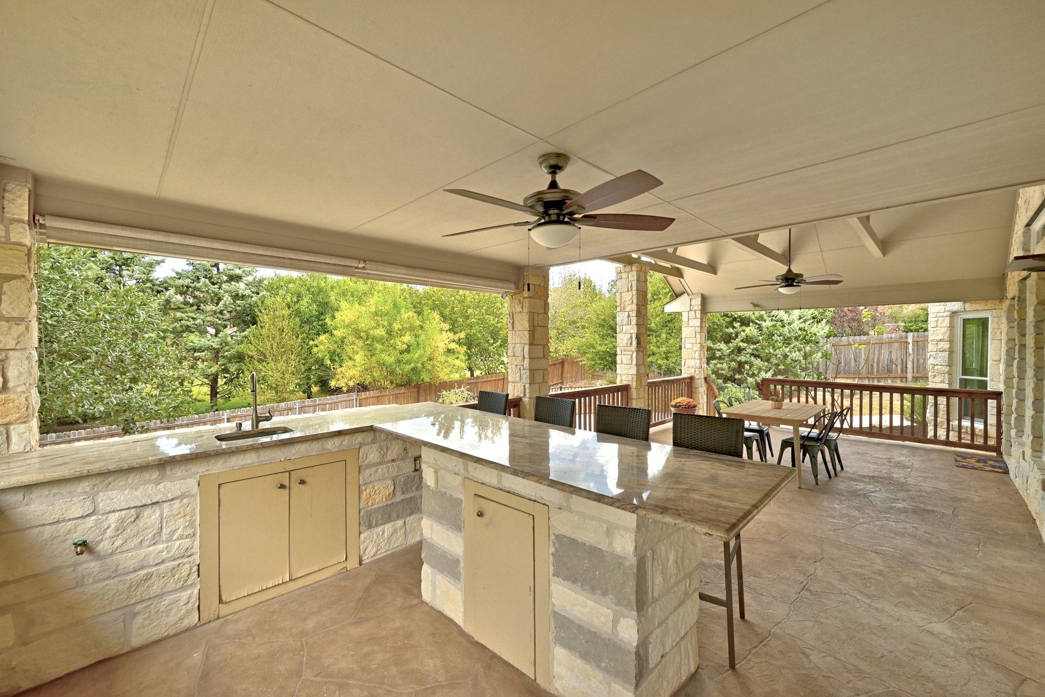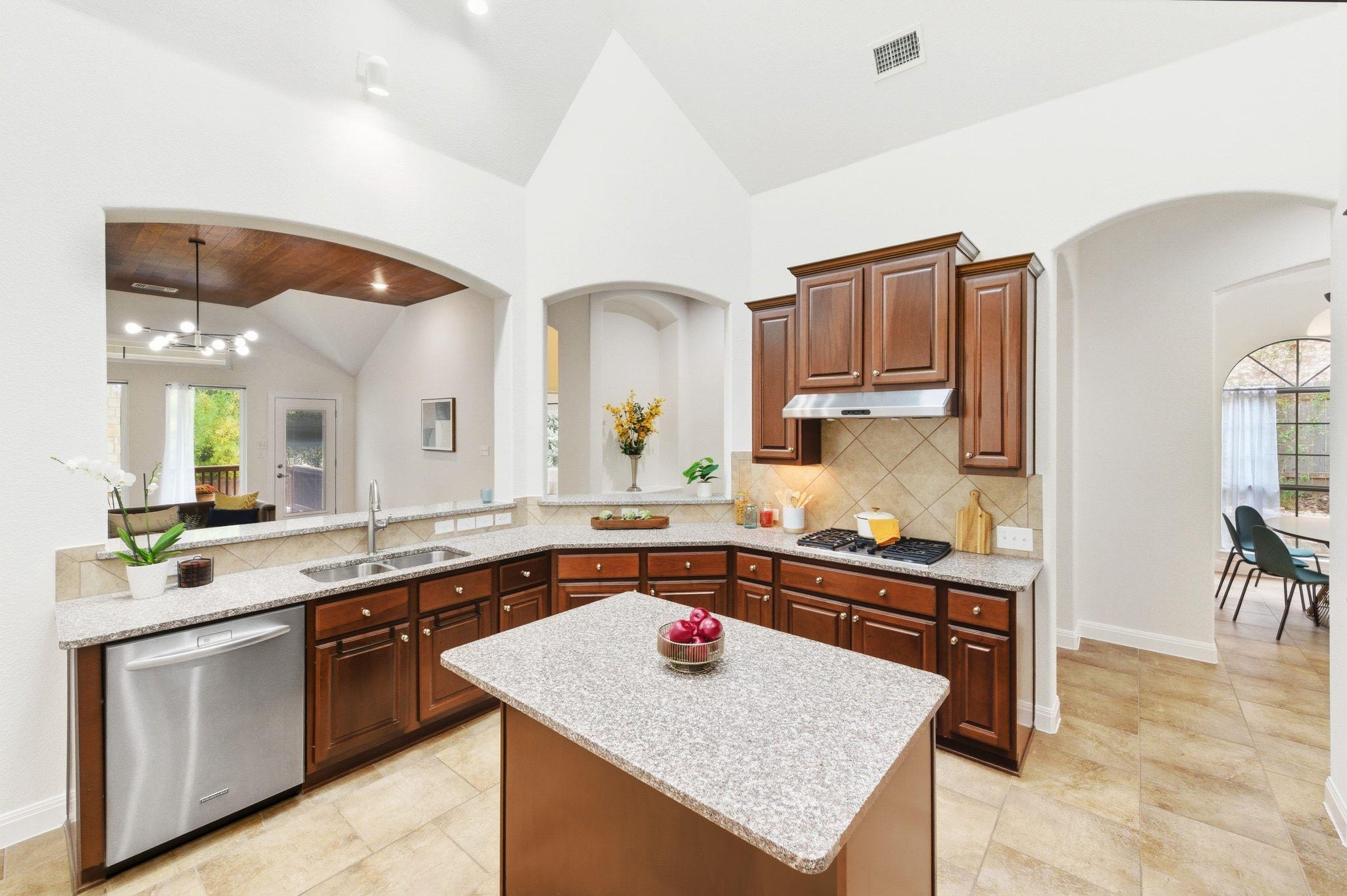 Welcome to your dream home nestled in the heart of the desirable Lantana neighborhood, located on a peaceful cul-de-sac street. This rare single-story floor plan features 3 bedrooms, 3 full bathrooms, a versatile office, a formal dining room, and a bonus room, making it perfect for adapting to your lifestyle needs. Soaring 20ft cathedral ceilings crowned with a skylight, and expansive granite countertops, making the centrally located kitchen an entertainer's delight. Easy-care tile and hardwood floors throughout are complemented by high ceilings that enhance the airy feel, while special touches, including crown molding in the formal dining area and wood detail ceiling in the living room, add personality. Outdoor living comes naturally on the large covered patio, which features a kitchen/wet bar area (already equipped with electricity and natural gas connections), as well as tree-filtered views of the expansive private backyard with lovely rock river landscaping. This oversized .30-acre homesite features a rare side-by-side three-car garage and is conveniently located near vibrant restaurants, shops, and entertainment. With easy access to Bee Caves, Downtown Austin, and the airport, this home combines tranquility with modern convenience. Don't miss the opportunity to make this your own oasis!