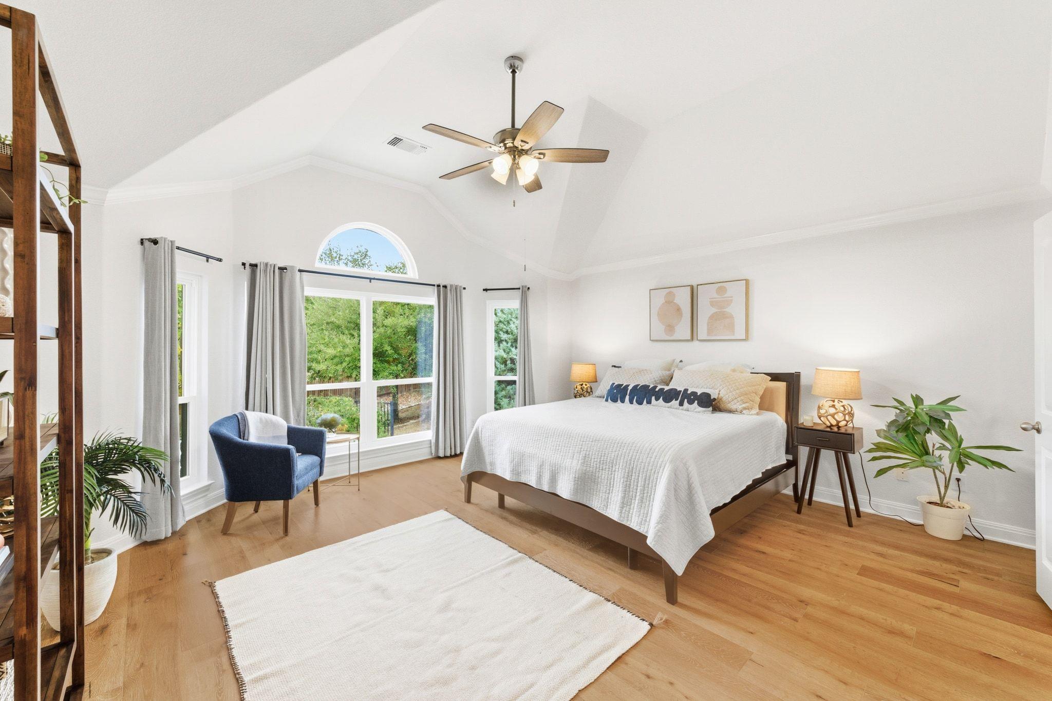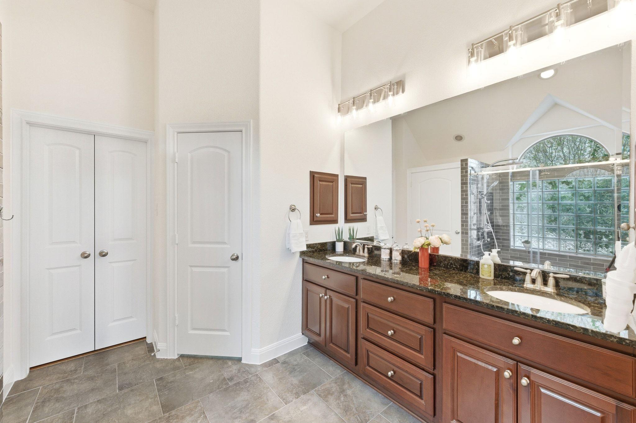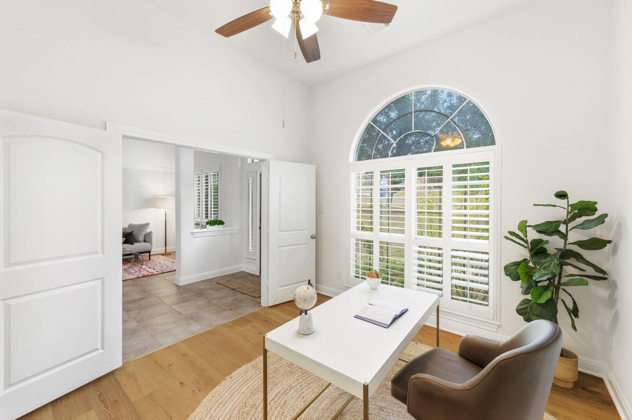 Welcome to your dream home nestled in the heart of the desirable Lantana neighborhood, located on a peaceful cul-de-sac street. This rare single-story floor plan features 3 bedrooms, 3 full bathrooms, a versatile office, a formal dining room, and a bonus room, making it perfect for adapting to your lifestyle needs. Soaring 20ft cathedral ceilings crowned with a skylight, and expansive granite countertops, making the centrally located kitchen an entertainer's delight. Easy-care tile and hardwood floors throughout are complemented by high ceilings that enhance the airy feel, while special touches, including crown molding in the formal dining area and wood detail ceiling in the living room, add personality. Outdoor living comes naturally on the large covered patio, which features a kitchen/wet bar area (already equipped with electricity and natural gas connections), as well as tree-filtered views of the expansive private backyard with lovely rock river landscaping. This oversized .30-acre homesite features a rare side-by-side three-car garage and is conveniently located near vibrant restaurants, shops, and entertainment. With easy access to Bee Caves, Downtown Austin, and the airport, this home combines tranquility with modern convenience. Don't miss the opportunity to make this your own oasis!
